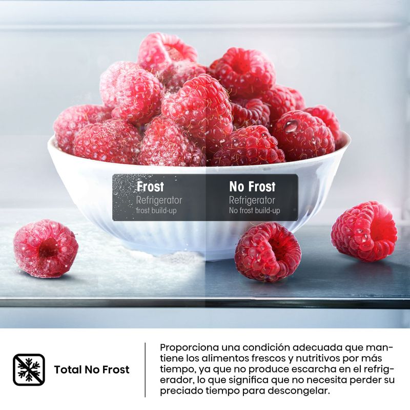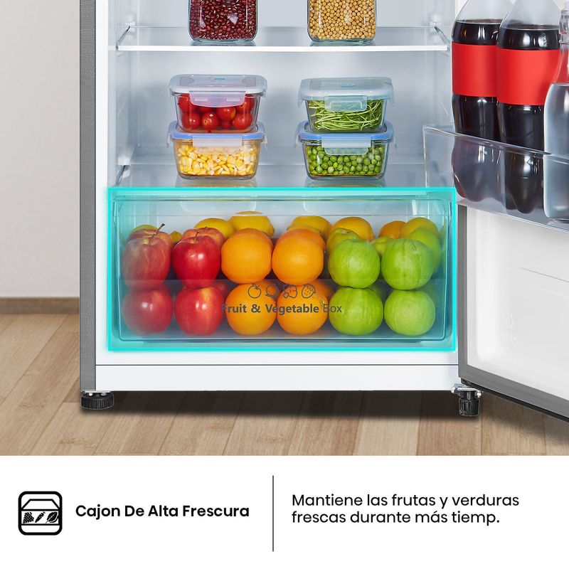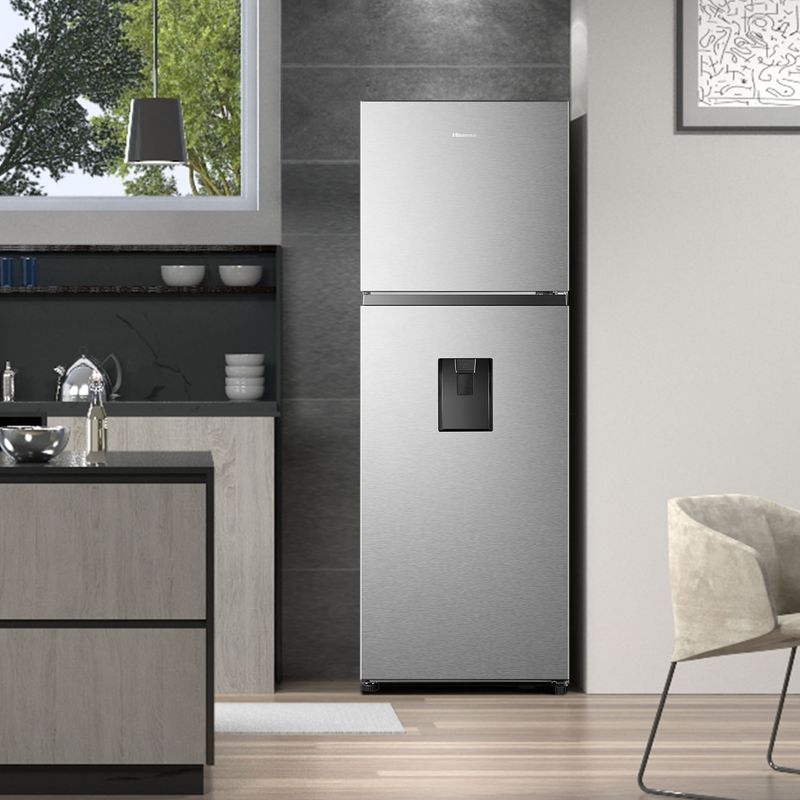 Refrigeradora No Frost Hisense Rt1N320Nmda, dentro de las refrigeradoras top mount, ofrece 324 litros de capacidad y un diseño en color gris que combina con cocinas modernas. El sistema No Frost evita la formación de hielo, reduce la necesidad de descongelado y facilita la limpieza diaria. La distribución interna prioriza un congelador superior y un compartimento espacioso para alimentos, pensado para optimizar la organización semanal.