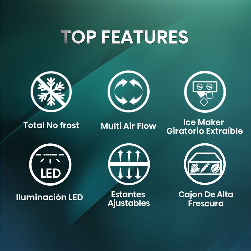 La tecnología de flujo de aire múltiple garantiza una distribución homogénea de la temperatura, preservando la calidad de cada alimento. La clase A de eficiencia energética se traduce en menor consumo, y la manija lineal incorporada aporta un toque sobrio y funcional. La garantía de 12 meses completa la propuesta con tranquilidad.