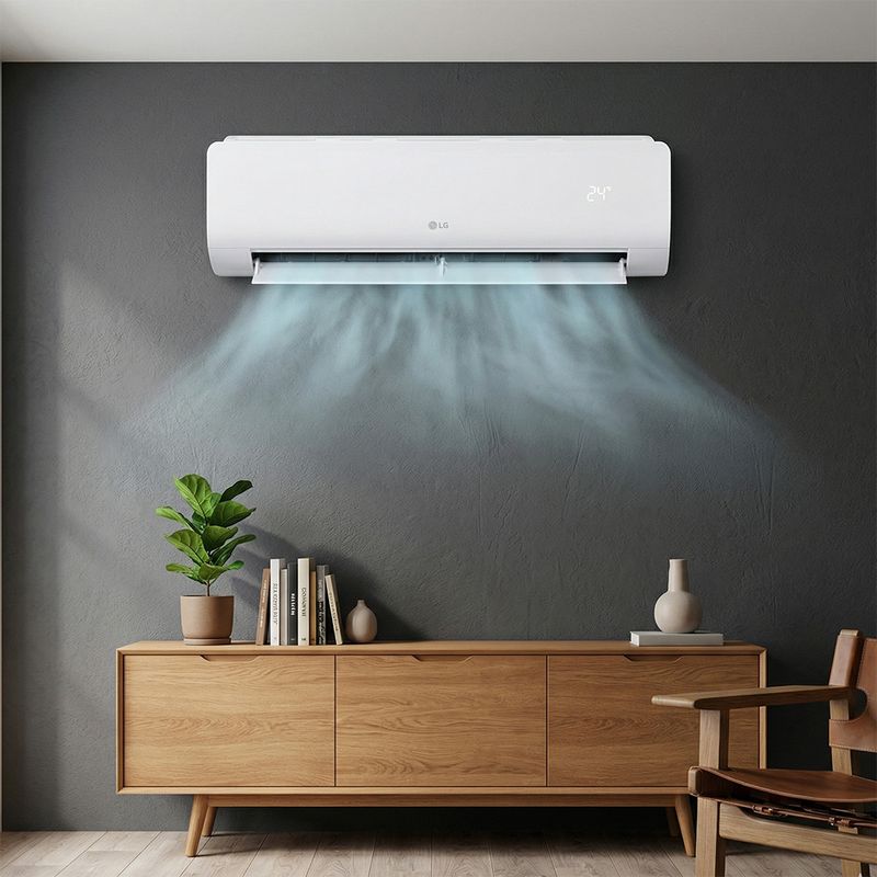 Aire acondicionado Split Inverter LG 12 000 BTU con compresor Dual Inverter, enfriamiento rápido, ahorro de energía, deshumidificador y filtros que purifican el aire. Ideal para habitaciones hasta ~20 m².