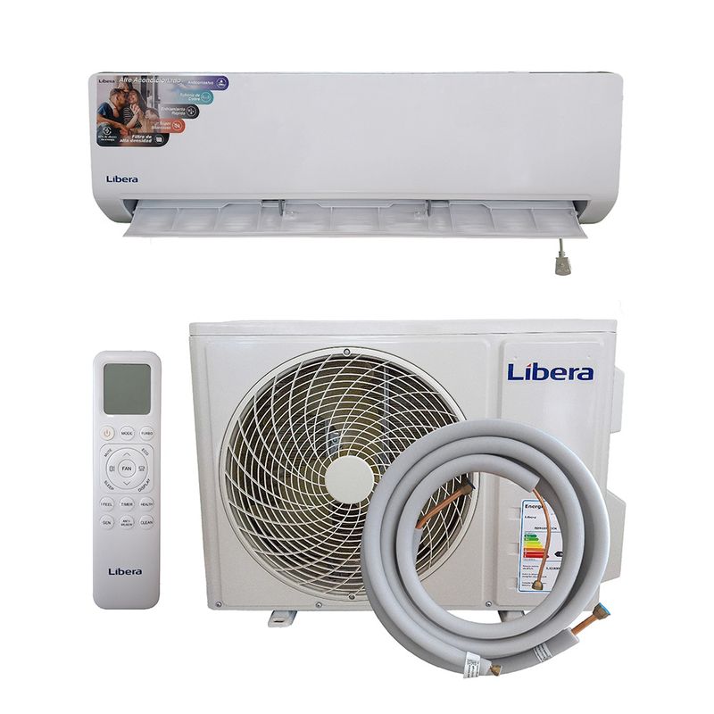 Libera 24000 BTU ofrece enfriamiento potente para espacios amplios con rendimiento eficiente y ecológico. Su SEER 13 se traduce en consumo cuidadoso de energía sin sacrificar el confort, mientras el filtro antibacterial cuida la calidad del aire. Con acabado blanco elegante, pantalla oculta y funcionamiento confiable, la unidad split se instala fácilmente y se controla con el control remoto incluido, adaptándose a distintos estilos de ambiente.