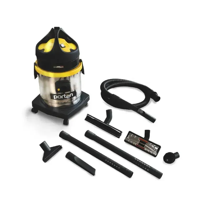 La Aspiradora 1000W Acero Inoxidable 23Lt Seco/Mojado 110V Porten, modelo PAW-215, llega con una construcción en acero inoxidable y un tanque de 23 litros que resiste el trabajo duro. Su potencia de 1000 W y su funcionamiento a 110 V permiten aspirar tanto polvo seco como líquidos sin necesidad de cambiar de equipo. El color Amarillo aporta visibilidad en entornos ocupados y facilita su ubicación en talleres, lavadoras de autos, empresas y hoteles. Gracias a su diseño con ruedas, el manejo es ágil, y la movilidad se ve favorecida en traslados cortos entre zonas de trabajo.