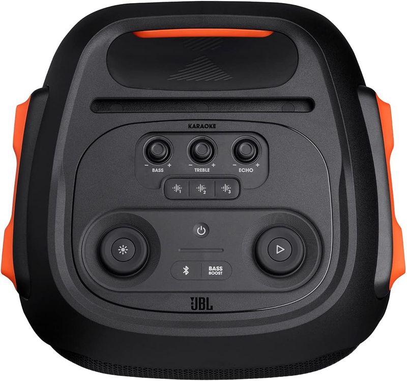 La PartyBox 710 transforma cualquier espacio en un escenario. Las luces de fiesta gestionan un conjunto de efectos: estroboscópicas dinámicas, un modo de noche estrellada y patrones de club intermitentes que responden al ritmo. Todo se controla desde diales en el panel superior, fáciles de ajustar sin interrupciones, o desde la aplicación PartyBox para personalizar colores y patrones según el ambiente. Esa sinergia entre iluminación y sonido crea una experiencia envolvente que convierte cada momento en una oportunidad para bailar, cantar y celebrar.