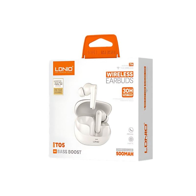 Audífono inalámbrico LDNIO T05 ofrece un perfil de sonido con Bass Boost que resalta bajos profundos y agudos claros, sumado a cancelación de ruido para una escucha más limpia en entornos concurridos. La conectividad Bluetooth 5.3 asegura un emparejado rápido y una conexión estable con la mayoría de dispositivos con Bluetooth, mientras que el micrófono integrado permite llamadas con voz nítida y sin enredos.