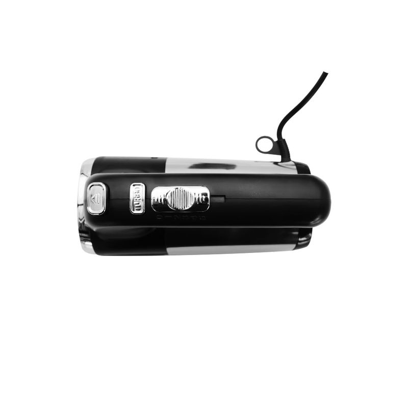 El conjunto de accesorios incluye aspas para mezclar y aspas para batir huevos y cremas; ambas piezas se intercambian con el práctico botón de expulsión de las aspas. El modo turbo está dispuesto para activar un impulso adicional cuando la preparación lo exige, obteniendo mezclas más homogéneas y rápidas. El diseño funcional se acompaña de un acabado elegante en gris que encaja en cocinas modernas, manteniendo la practicidad como prioridad.