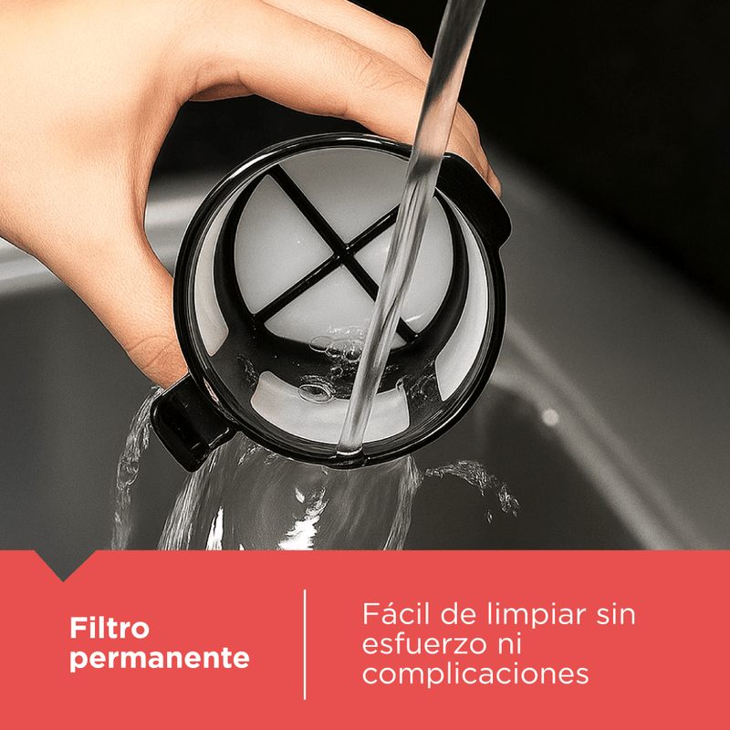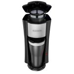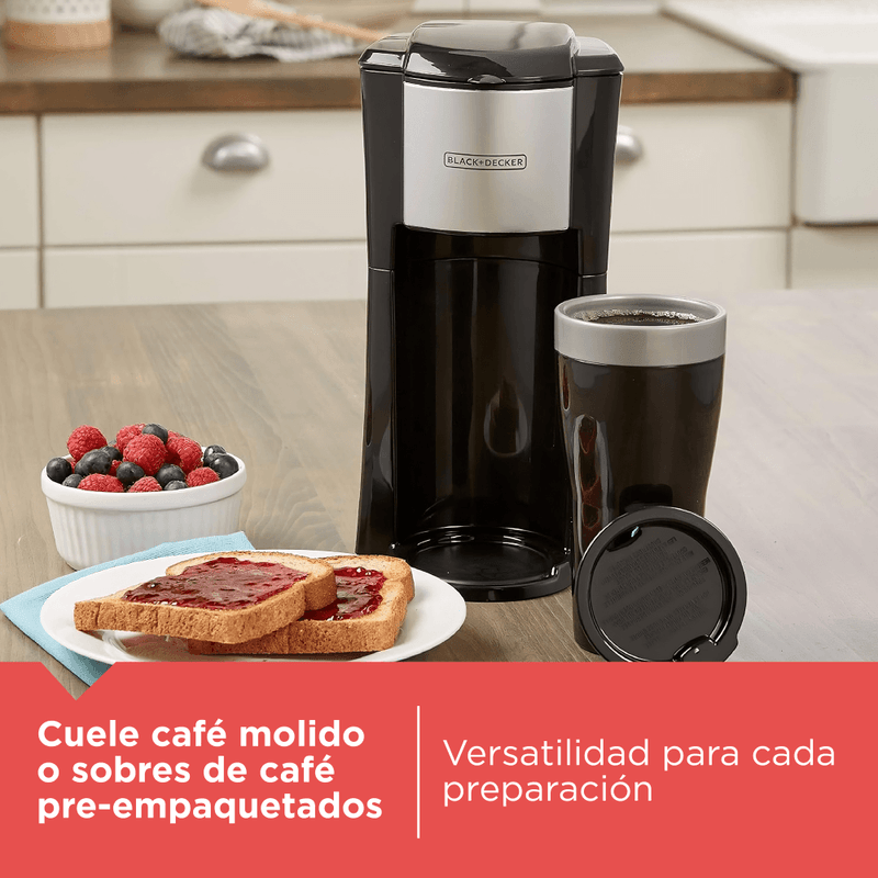 Es una cafetera ideal para un estilo de vida activo y en movimiento. Use café molido o sobres de café pre-empaquetados para preparar directamente en la Taza Termo de 16-oz. que cabe en la mayoría de los sostenedores de taza del coche. La práctica operación de un solo toque y características útiles como una cesta de filtro extraíble con filtro permanente incluido harán que su ritual de café de la mañana sea una experiencia instantanea de elaboración. Esta máquina tiene tanto las piezas de lavavajillas y el apagado automático.