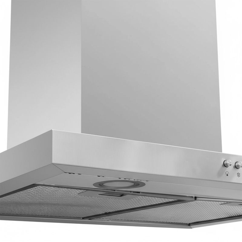 Entre sus características se destacan su extracción de alta capacidad y su panel de control frontal con botones mecánicos, que permiten ajustar velocidades y encender la iluminación sin distracciones. Además, su acabado en acero inoxidable resiste huellas y mantiene un aspecto moderno con el uso diario. La iluminación LED integrada ofrece luz clara justo donde se necesita, ideal para preparar ingredientes y vigilar el avance de las preparaciones. Con instalación de pared en un formato de 60 cm, encaja con cocinas de estilo contemporáneo y facilita la limpieza.