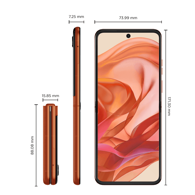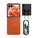 Su diseño naranja combina estilo y presencia, con medidas compactas para un teléfono plegable resistente y cómodo de sostener. Peso ligero de 0.18 kg y acabado cuidado refuerzan una experiencia de uso premium en cualquier ocasión.