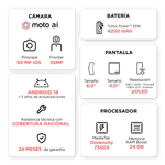Con una pantalla externa funcional 2.4 veces más grande, el Motorola Razr 50 eleva la experiencia diaria. Abre y consulta sin esfuerzo gracias a la pantalla de 3.6\", mientras la pantalla principal de 6.9\" con tecnología pOLED ofrece colores vivos y detalle claro. Android 14 llega para gestionar apps y funciones con fluidez, junto a 12 GB de RAM y 512 GB de memoria interna para almacenar fotos, videos y apps de forma ágil.