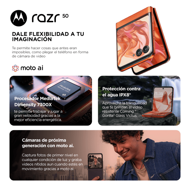 Con carga USB-C, resistencia IPX8 para uso diario y una garantía de 12 meses, el Razr 50 se presenta como una opción sólida para quien busca potencia, rendimiento y estilo en un mismo dispositivo.