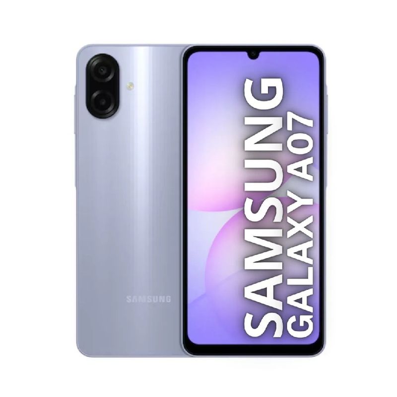 El Celular Samsung A07 llega en un tono violeta que combina estilo y practicidad, con una pantalla de 6,7 pulgadas que ofrece imágenes amplias y nítidas gracias a su resolución HD+ y una tasa de refresco de 90 Hz. Ideal para ver videos, chats y redes, con colores vivos y un diseño cómodo para sujetar.