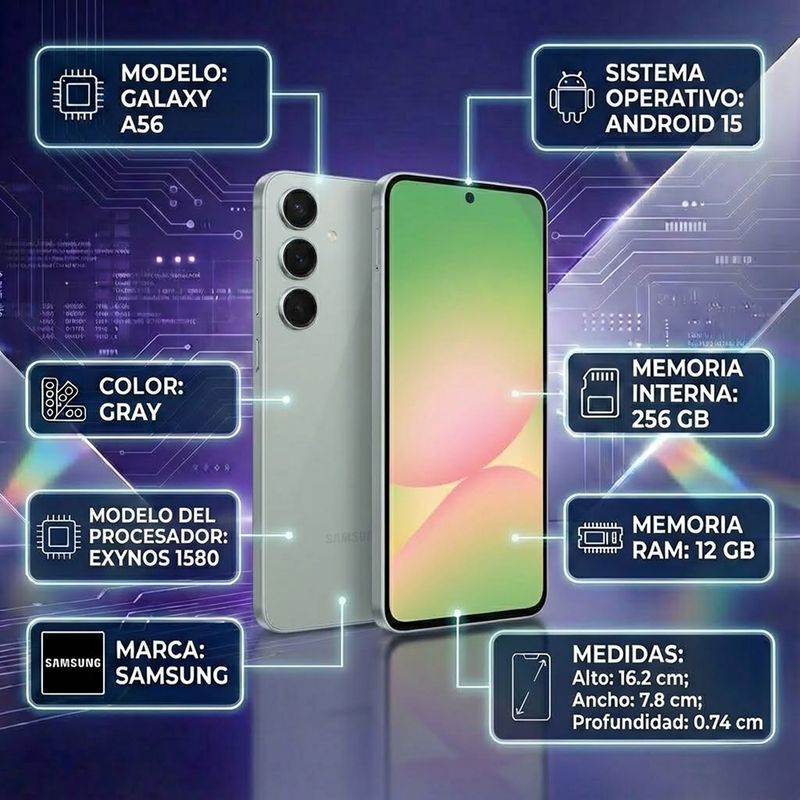 Celular Samsung A56 P88577 | 6,7" 12GB RAM 256GB Memoria Interna Color Gray