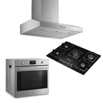 Potencia y estilo en una sola pieza: 4 quemadores de alta eficiencia permiten cocinar varias preparaciones al mismo tiempo; el horno HE2750 de 52 litros ofrece 7 funciones para hornear y gratinar con resultados uniformes; la campana CX4300 extrae vapores y olores con filtración metálica. El acabado negro con gris añade un aire moderno y facilita la limpieza diaria.