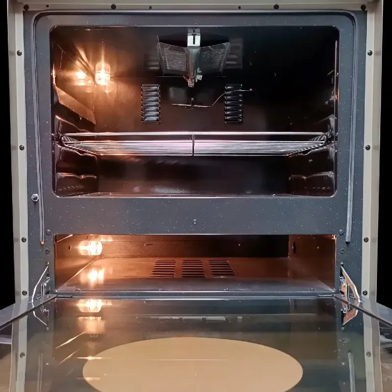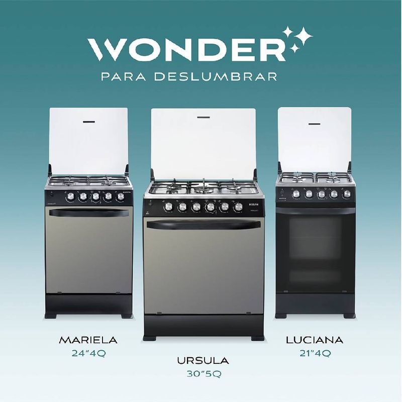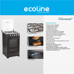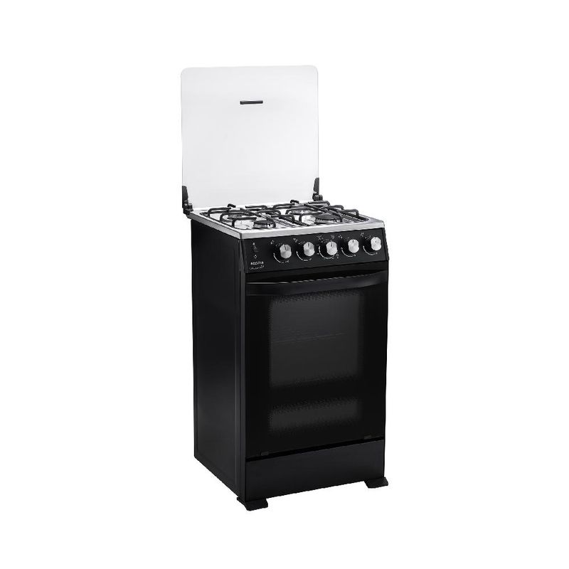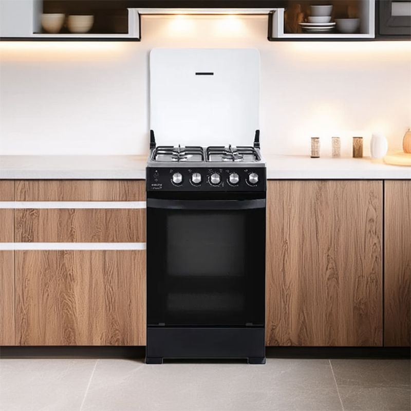 Su acabado negro mate aporta estilo contemporáneo a la cocina, y el conjunto en acero inoxidable resiste el uso diario. Cada quemador ofrece control preciso para intensificar o moderar la cocción, mientras la tapa de vidrio templado protege y retiene el calor. El horno inferior integra doble broil para gratinar y descongelar, ampliando opciones sin necesidad de equipos adicionales. La bandeja de goteo simplifica la limpieza, y el reloj digital junto a la luz interior facilitan la supervisión de cada etapa.