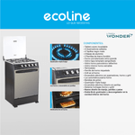 La cocina a gas ecoline MARIELA 4 Quemadores Grill se integra a cocinas modernas con su acabado negro mate y una tapa de vidrio templado que aporta estilo y durabilidad. Incluye 4 quemadores y un grill para dorar y sellar platos sin complicaciones, ideal para menús variados. El encendido eléctrico responde al giro de la perilla y la luz interior facilita revisar alimentos en cualquier momento. Todo se diseña para convertir la preparación en una experiencia práctica y ordenada.