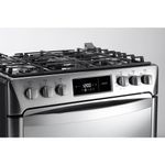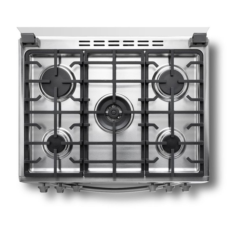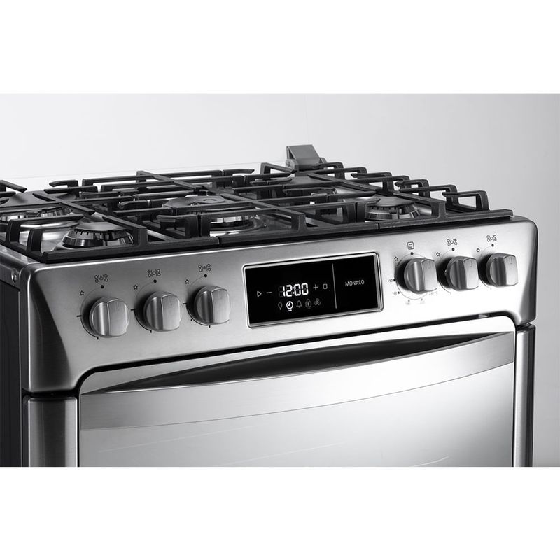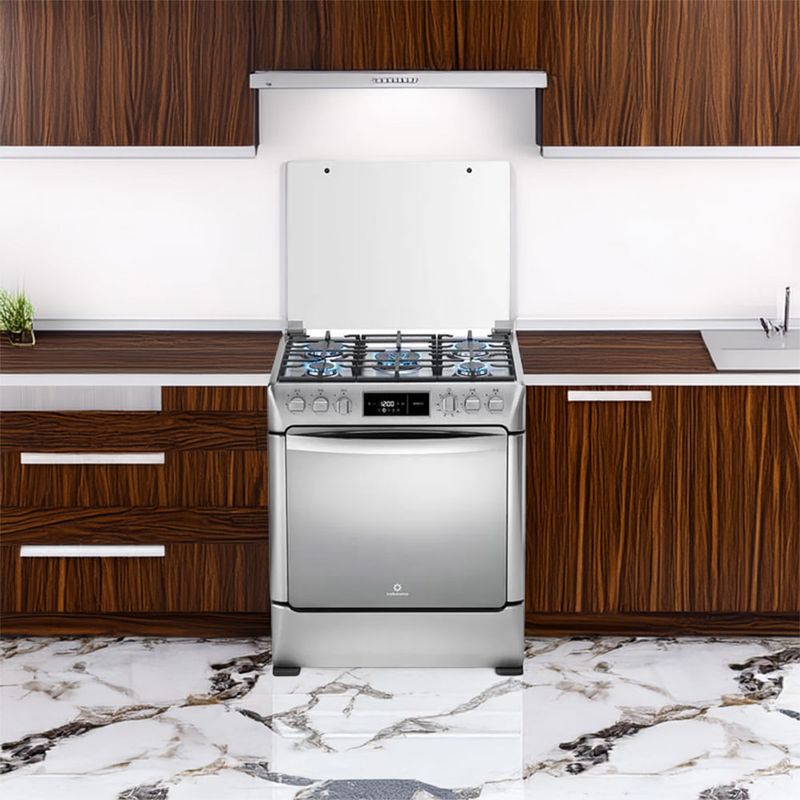 Con una instalación libre, la Cocina a Gas Indurama Mónaco permite cocinar con rapidez gracias a sus cinco quemadores y su encendido eléctrico. Su acabado plateado en acero inoxidable y la tapa de vidrio templado combinan durabilidad con estilo, mientras la luz interior ilumina el interior para revisar las bandejas sin abrir la puerta. El reloj digital añade precisión de temporización y seguridad con apagado automático si detecta una anomalía.