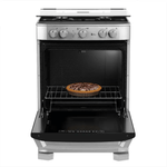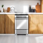Además de su montaje independiente, el acabado en acero inoxidable resiste manchas y salpicaduras, manteniendo su aspecto pulcro por más tiempo. La tapa de vidrio templado protege la cocina y facilita un cierre suave sin ruidos, mientras la iluminación interior realza la visibilidad al cocinar y revisar alimentos sin abrir la puerta de gas. El encendido electrónico simplifica cada gesto, eliminando cerillas y acelerando el proceso desde el primer intento. Todo se integra para un uso cómodo y seguro.