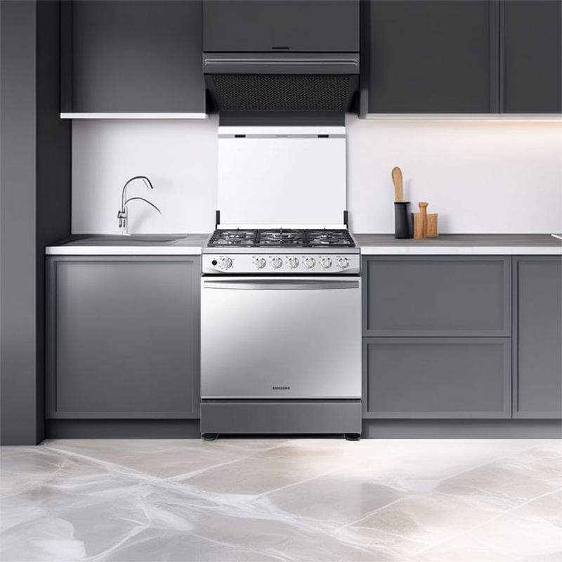 Con la cocina a gas Samsung NX52T7522LS/AP, las recetas grandes se vuelven asequibles y prácticas. El quemador de triple potencia crea calor abrasador y multidimensional para hervir, sellar y dorar rápidamente, mientras que el quemador rápido reduce tiempos sin perder control. El acabado inoxidable aporta robustez y estilo, y el encendido eléctrico facilita la puesta en marcha con giro suave de la perilla. El horno de gran capacidad facilita preparar varias piezas al mismo tiempo.
