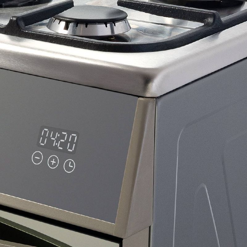 Con esta cocina a gas ecoline Constanza, cada comida gana velocidad y precisión. Los cinco quemadores sellados cubren desde hervor rápido hasta cocciones lentas, mientras el encendido eléctrico funciona sin fósforos. La tapa de vidrio templado añade estilo y protege la cocina cuando no está en uso, y la iluminación interior permite vigilar los guisos sin abrir la puerta.