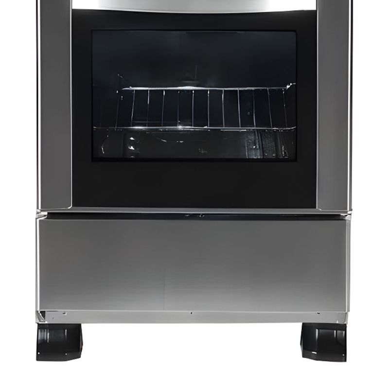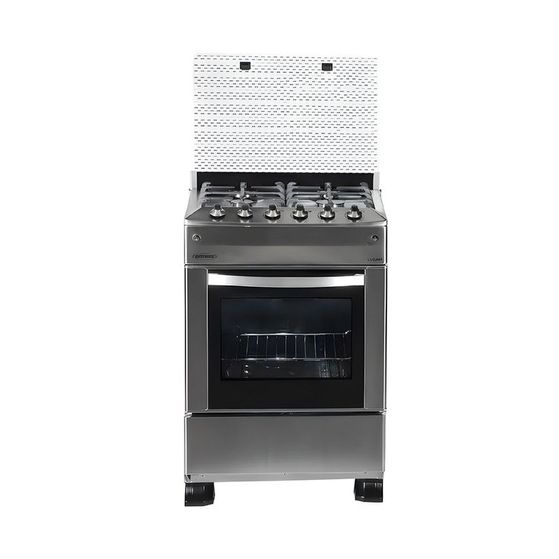 Esta cocina a gas cromada trae eficiencia al hogar, permitiendo cocinar varias preparaciones al mismo tiempo gracias a sus 4 quemadores. El encendido eléctrico facilita encender sin fósforos, y la tapa de cristal añade seguridad y un toque limpio al frente de la cocina. El interior iluminado ayuda a ver las bandejas sin esfuerzo, mientras el acero inoxidable resiste el uso diario.