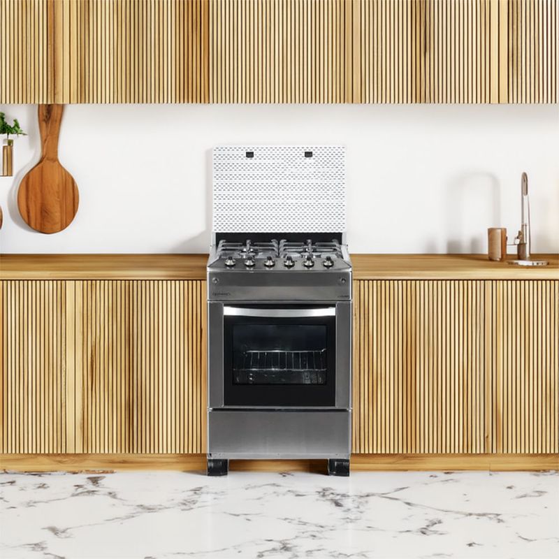 Mientras la familia se reúne, esta cocina facilita preparar desayunos abundantes, almuerzos y cenas sin interrupciones. Es compatible con el ritmo diario, ofrece seguridad con tapa de cristal y control sencillo gracias al encendido eléctrico. En cualquier hogar, su acabado cromado y acero inoxidable mantiene un aspecto pulcro y moderno, listo para responder a cada demanda culinaria.