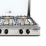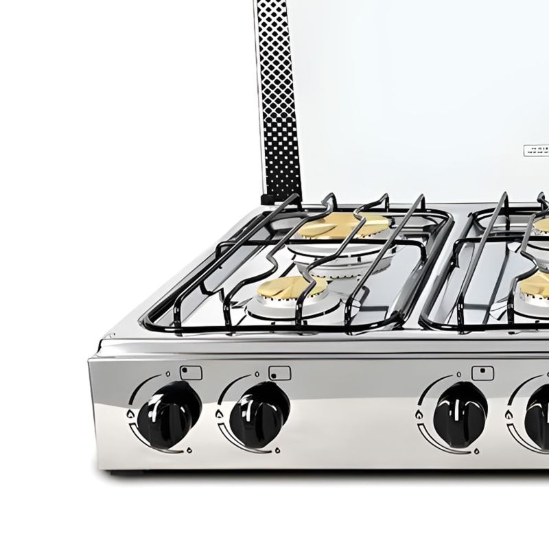 Mientras cocinas se aprovecha al máximo cada zona, ideal para desayunos, almuerzos y cenas sin migrar entre fuegos. Su acabado en acero inoxidable facilita la limpieza diaria y la tapa de vidrio templado ayuda a mantener el área ordenada cuando no está en uso. Al instalarla como cocineta empotrable, la cocina gana estilo y funcionalidad, lista para responder con rapidez y precisión a las recetas diarias.