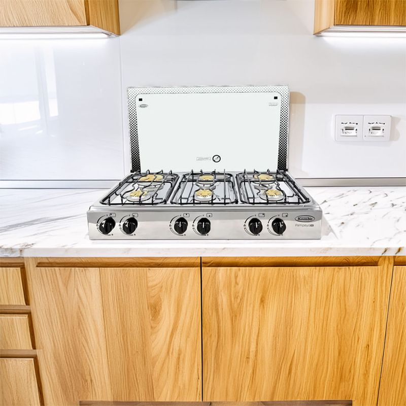 Con la Cocineta Kombo Pompeya se cocinan varias preparaciones al mismo tiempo, optimizando tiempos en la cocina. Cuenta con 6 quemadores de distintos tamaños para completar recetas sin esperas. Su acabado en acero inoxidable y tapa de vidrio templado aportan durabilidad y seguridad, mientras el encendido manual ofrece control directo al cocinar. Además, la garantía de 18 meses garantiza tranquilidad al invertir en una cocina de uso diario.