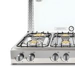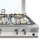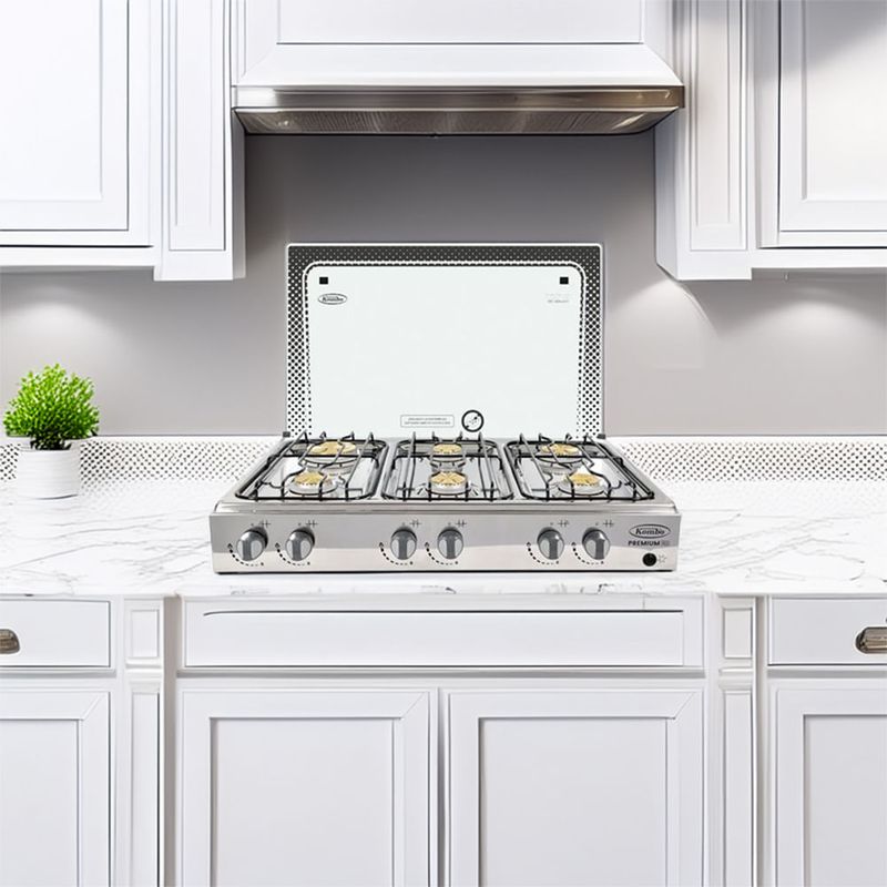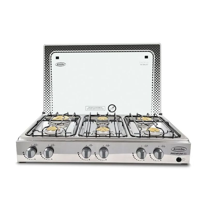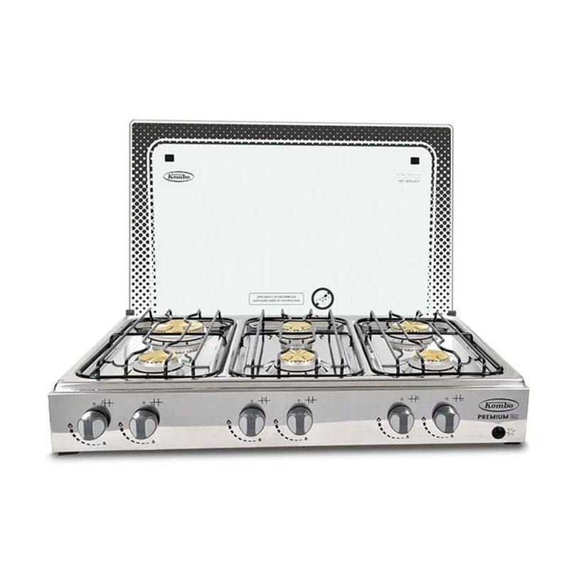 Cocinar con facilidad es posible gracias a 6 quemadores que permiten preparar varios platos al mismo tiempo. El acabado de acero inoxidable resiste salpicaduras y manchas, manteniendo un aspecto limpio y profesional. El encendido eléctrico facilita encender la llama sin fosforos y añade seguridad al flujo de cocción. Además, la tapa de vidrio templado integra el estilo y facilita ver el progreso sin abrirla, mientras las bases antideslizantes mantienen la cocineta estable durante el movimiento.