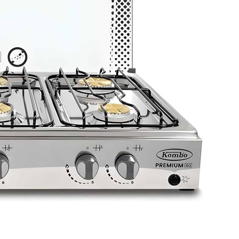 La cocineta destaca 6 quemadores con distribución equilibrada para manejar varias recetas simultáneamente, incluido un jumbo para cacerolas grandes y un grande para generar calor rápido en sartenes grandes. Las 4 tapillas de bronce fundido aseguran durabilidad y una distribución uniforme del calor, mientras las bases de quemador de aluminio inyectado aportan estabilidad y resistencia. La tapa de vidrio templado bajo norma INEN añade seguridad y permite vigilar cocción sin abrir. Perillas de PVC de doble cuerpo resisten al calor y permiten ajustar con precisión, acompañadas de regatones antideslizantes y parrillas enlozadas para un cocinado limpio.