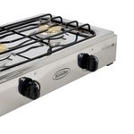 Además de su acabado en acero inoxidable y su configuración de sobremesa, esta cocineta integra detalles pensados para la seguridad y la practicidad. Las tapas y componentes están diseñados sin filos cortantes internos y externos, reduciendo riesgos al manipularlas. Incluye tapillas de bronce fundido y bases de quemador en aluminio inyectado para una distribución de calor eficiente. Las perillas resisten el calor y permiten ajustar la intensidad con precisión. Los regatones antideslizantes mantienen la cocineta estable sobre el mesón, mientras las parrillas enlozadas facilitan la limpieza diaria.