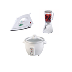 Este conjunto en color Blanco no solo añade un equipo para batir; es una solución completa para la cocina diaria. Plancha a Vapor ETA10 de 1000 W, con base de aluminio y recubrimiento antiadherente, facilita el planchado de prendas con control de temperatura. Olla Arrocera RC006 de 0.6 L, con tazón de aluminio anodizado que distribuye el calor de manera uniforme, tapa de vidrio para ver la cocción y accesorios como vasito medidor y cuchara. El panel de luces y la palanca de encendido aportan claridad en cada paso de la cocción.
