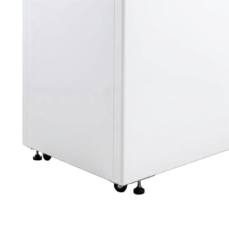 El sistema de descongelamiento es manual, lo que simplifica el manejo diario. La tapa de vidrio brinda visibilidad del contenido sin abrir la puerta y ayuda a mantener el frío de manera constante. El color blanco añade luminosidad y se adapta a un estilo de cocina, ya sea moderno o clásico. La dotación de acabado blanco resiste bien el paso del tiempo.