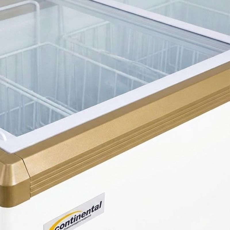Congelador horizontal Continental SD-480Q ofrece una capacidad de 440 litros en un formato que combina congelación y enfriamiento en una misma unidad. Su acabado blanco y la tapa de vidrio aportan presencia y permiten verificar visualmente el estado del contenido sin abrir la puerta repetidamente.