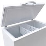 Entre sus facilidades destacan una canastilla para ordenar artículos pequeños, drenaje para facilitar la descongelación manual y una iluminación LED que se activa al abrir. Las luces indicadoras verde y naranja informan si el compresor está funcionando y si la opción turbo está en marcha. Además, cuatro ruedas permiten moverlo con facilidad y la cerradura incorporada mejora la seguridad tras el cierre.