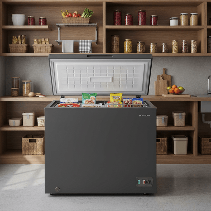 CARACTERÍSTICAS • Revestimiento interior de aluminio • Manija interna • Condensador en el interior • Panel con luz • Descongelamiento manual • Temporizador mecánico con luz • Refrigerante R600a • Frecuencia Voltaje: 110v / 60hz Garantía: 12 meses
