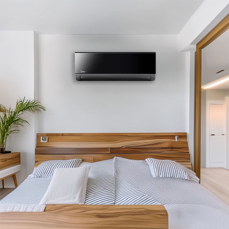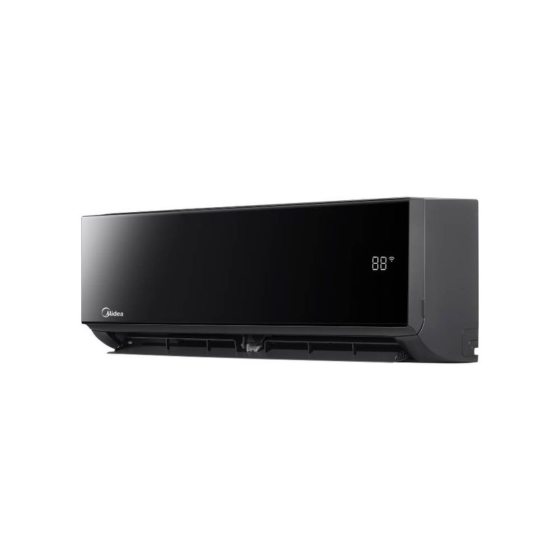 Este aire acondicionado Split Midea ofrece enfriamiento eficiente con 18000 BTU mediante tecnología Inverter, logrando temperaturas constantes y consumo estable. Su acabado negro aporta elegancia al espacio y la conectividad WiFi permite ajustar la temperatura desde cualquier lugar. Incluye control remoto y pantalla digital para manejo cómodo, mientras el refrigerante R32 optimiza el rendimiento y reduce el impacto ambiental.