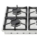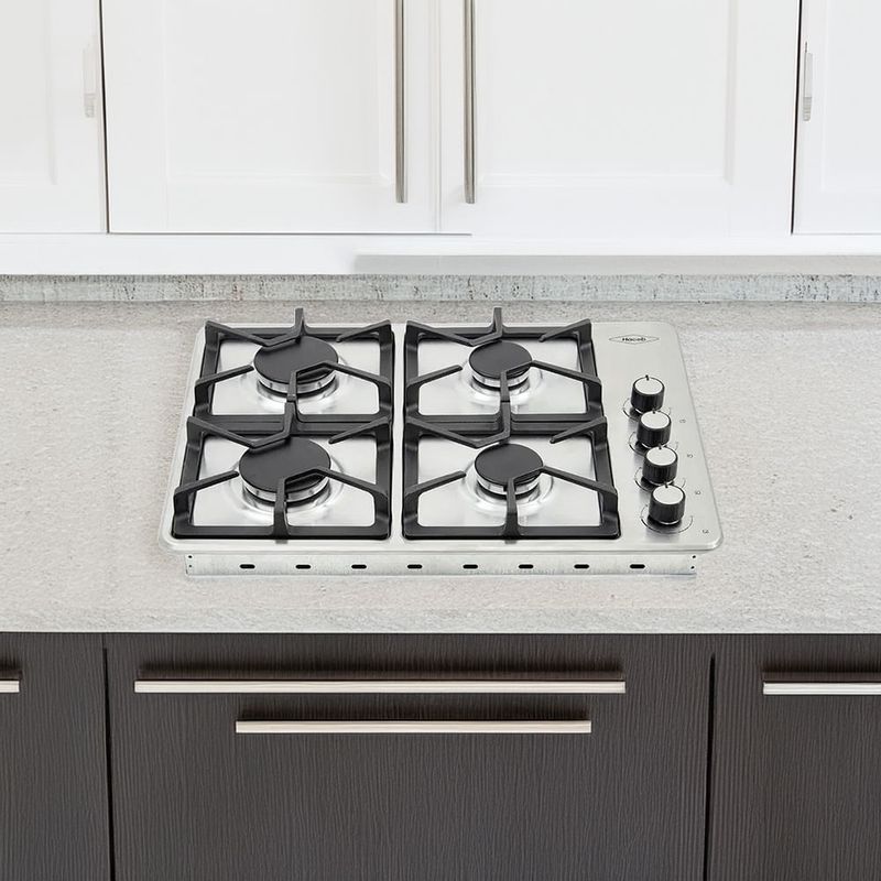 Cuatro quemadores en diferentes tamaños permiten adaptar la llama a cada olla y tarea culinaria, optimizando tiempos y seguridad. Parrillas en hierro fundido ofrecen mayor estabilidad, mientras la superficie lisa facilita la limpieza. El montaje empotrable garantiza un acabado limpio en la encimera y las perillas removibles simplifican la limpieza diaria.