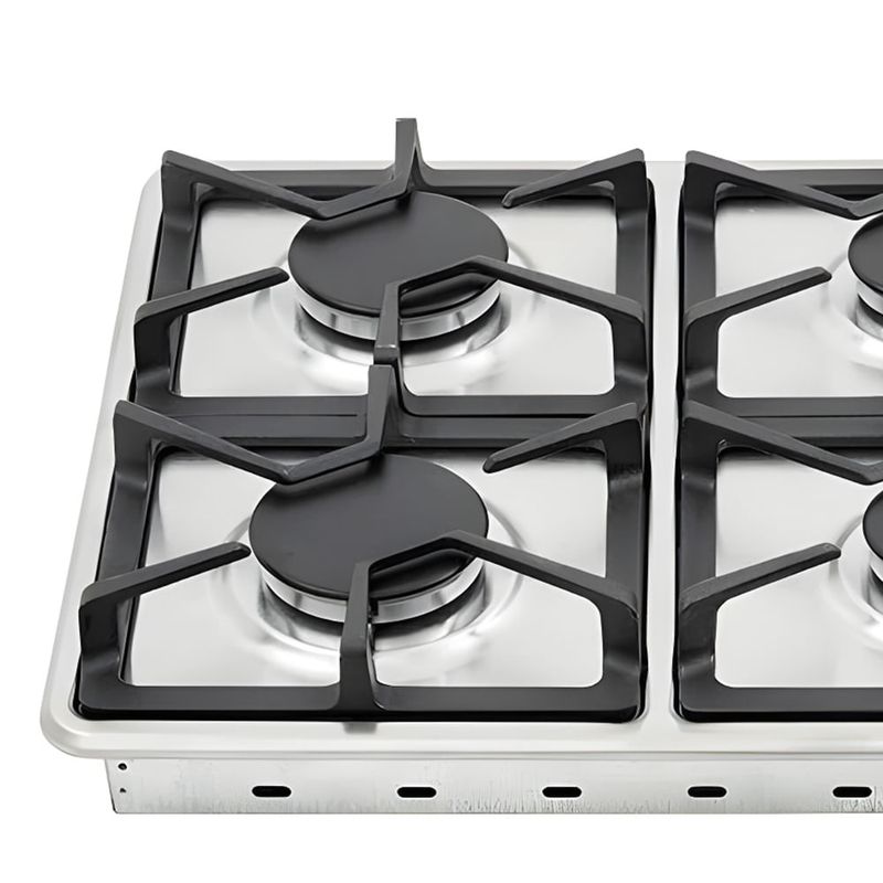 Para completar la experiencia, funciona como base de una cocina que combina diseño y rendimiento. El vidrio templado aporta un look moderno, el acero inoxidable resiste el uso diario y la limpieza resulta rápida gracias a la superficie lisa y a las perillas removibles. En sesiones de almuerzos familiares o cenas rápidas, la distribución de fogones facilita empezar varios platos al mismo tiempo.
