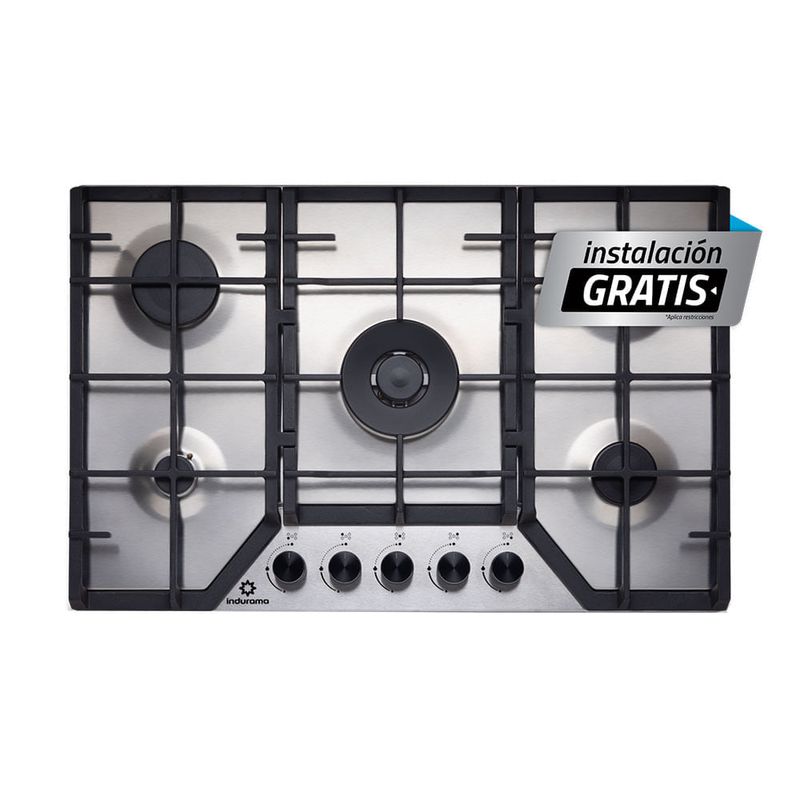 Encimera a Gas Indurama 755AI P8747 | 5 Quemadores 76 cm Color Silver
