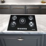 superficie de vidrio templado, parrillas de fundición, 1quemador auxiliar 1.0kw + 2quemadores semirapidos 1.75kw + 1quemador rapido 2.5kw + 1triple corona 3.3kw *110-220v Garantía: 12 meses