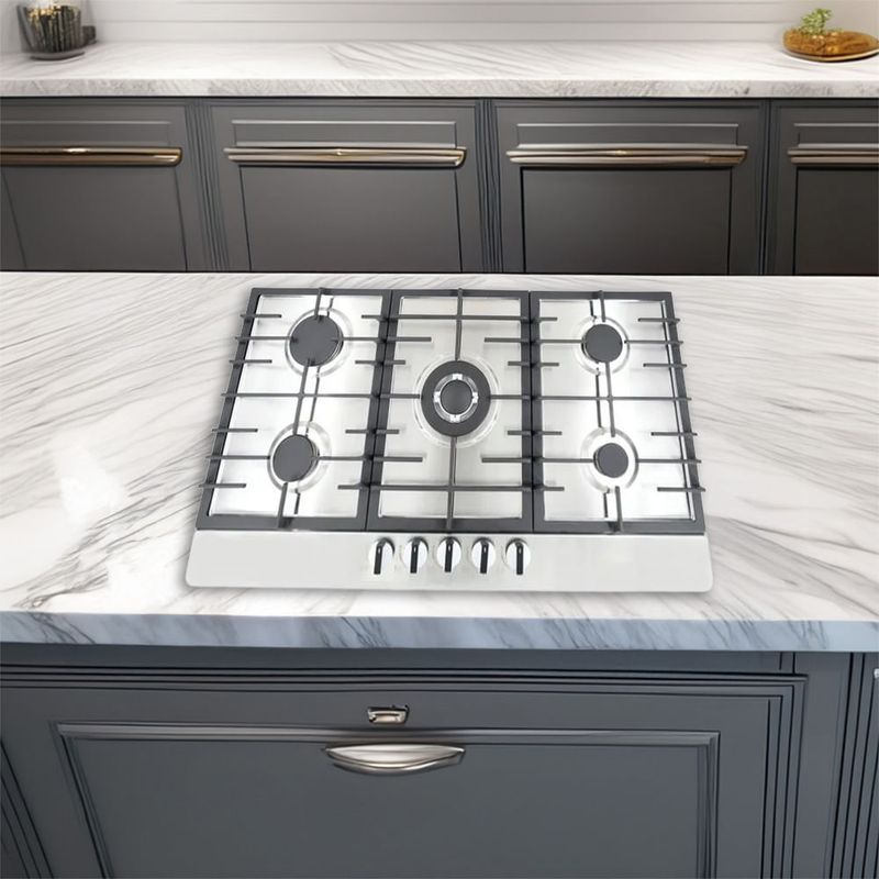 superficie de acero inoxidable, parrillas de fundición, 1quemador auxiliar 1.0kw + 2quemadores semirapidos 1.75kw + 1quemador rapido 2.5kw + 1triple corona 3.3kw *110-220v Garantía: 12 meses