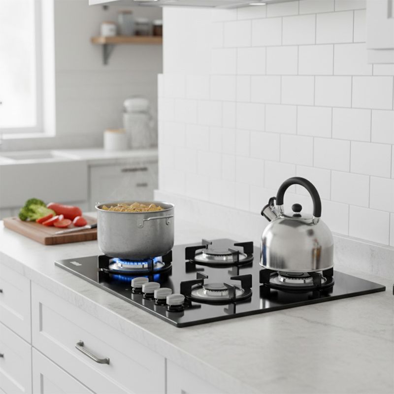 La encimera RCA 5RCOM0G ofrece 4 quemadores con control por perillas y una superficie de vidrio templado para limpieza fácil. Sus componentes, como las parrillas de hierro fundido y los empaques antiderrames, aportan estabilidad y seguridad durante la cocción. El montaje empotrable proporciona un acabado limpio e moderno en la cocina, optimizando el espacio y facilitando la integración con el mobiliario existente.