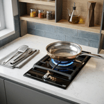 • Autoencendido integrado en quemador y accionado por cada mando • Soporte para Wok opcional • Parrillas de fundición amplia superficie • Kit de fácil instalación