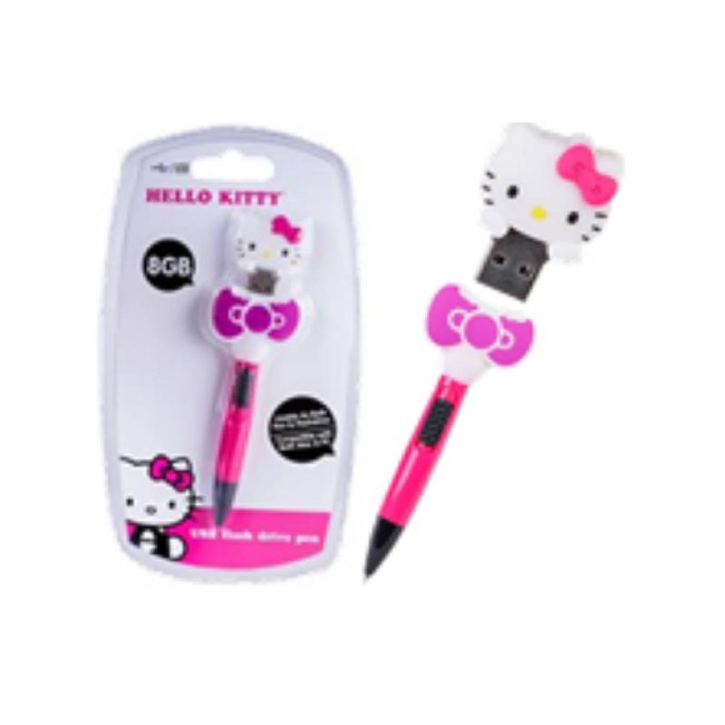 Memoria USB 20 de 8GB con diseño original Hello Kitty que incluye esfero integrado Práctico y funcional para llevar archivos y tomar notas al mismo tiempo Ideal para uso diario, estudiantes o como regalo Garantía: 12 meses