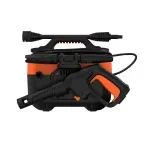 Tipo de uso y rendimiento: capaz de limpiar terrazas, muros, vehículos y herramientas del hogar sin esfuerzo. Incluye pistola con bloqueo de seguridad; boquillas; botella de detergente; manguera de 5 m; varilla; conector de jardín; filtro; pasador de limpieza y sujetador de cable. La combinación de presión y potencia permite trabajar con diferentes superficies con resultados eficientes.
