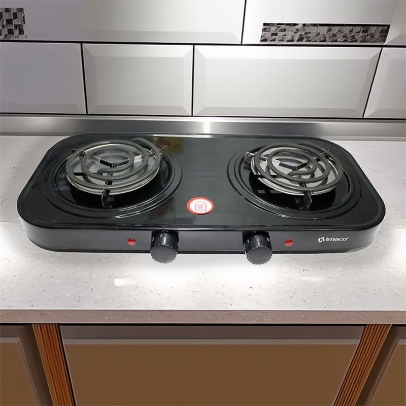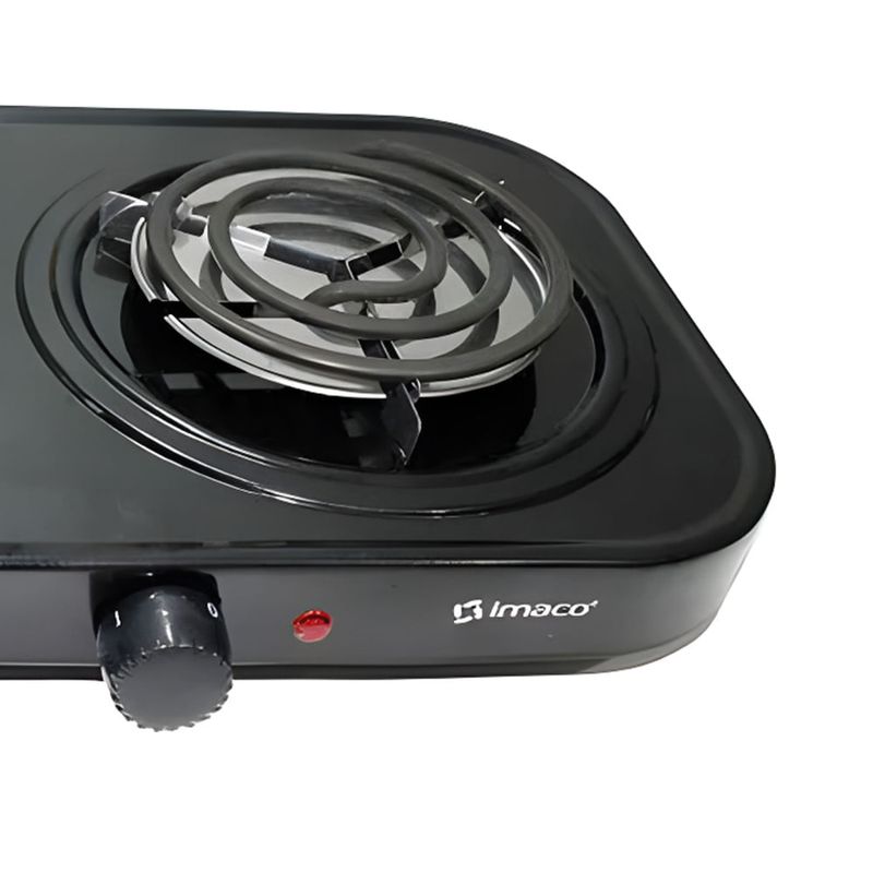 Con la hornilla eléctrica imaco se cocina rápido sin complicaciones. Su doble quemador y potencia total de 1700 W permiten preparar dos preparaciones a la vez y ajustar cada temperatura con perillas independientes. El acabado negro aporta un toque moderno, mientras su diseño portable facilita moverla entre la cocina, el comedor o la terraza para cualquier ocasión sin ocupar mucho espacio.