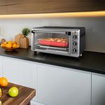 Cocina rápido con un horno tostador de sobremesa que ofrece resultados crujientes gracias a su potencia de 1500 W y un interior amplio que admite una bandeja de tamaño práctico para hornear. Integra cuatro funciones: hornear, asar, tostar y mantener caliente para cubrir desde meriendas hasta cenas simples. Su bandeja para migas se extrae con facilidad, y la limpieza resulta sencilla después de cada uso, manteniendo la encimera ordenada.