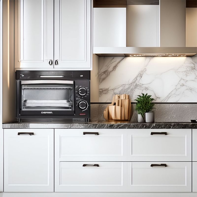 Convierte la encimera en un mini horno con resultados uniformes en cada tanda gracias a su potencia de 1000 W y a una amplia cámara para 4 rebanadas. Hornea, asa, tuesta y mantiene caliente con funciones versátiles que se adaptan a recetas rápidas o sesiones de cocina en casa. Su panel mecánico con perillas facilita ajustes, mientras la puerta de vidrio ofrece visibilidad durante la cocción.