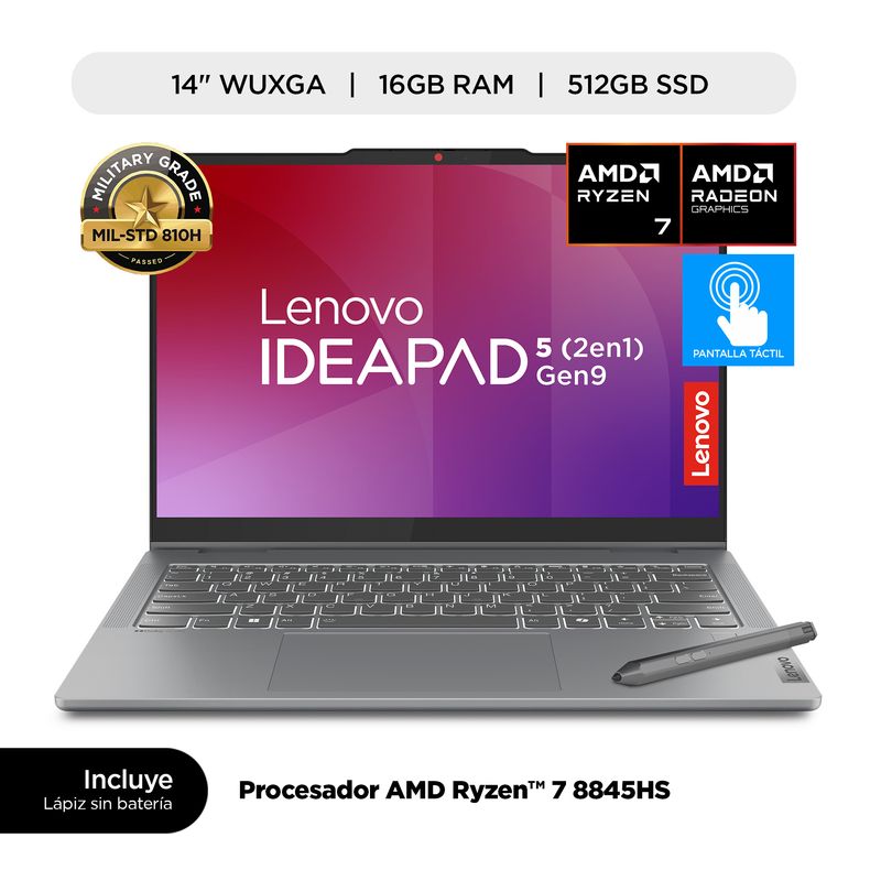 Laptop Lenovo Ideapad 5 2-In-1 14Ahp9 P86490 | 14" 16GB RAM 512GB-SSD Ryzen 7 8845Hs Color Luna Grey