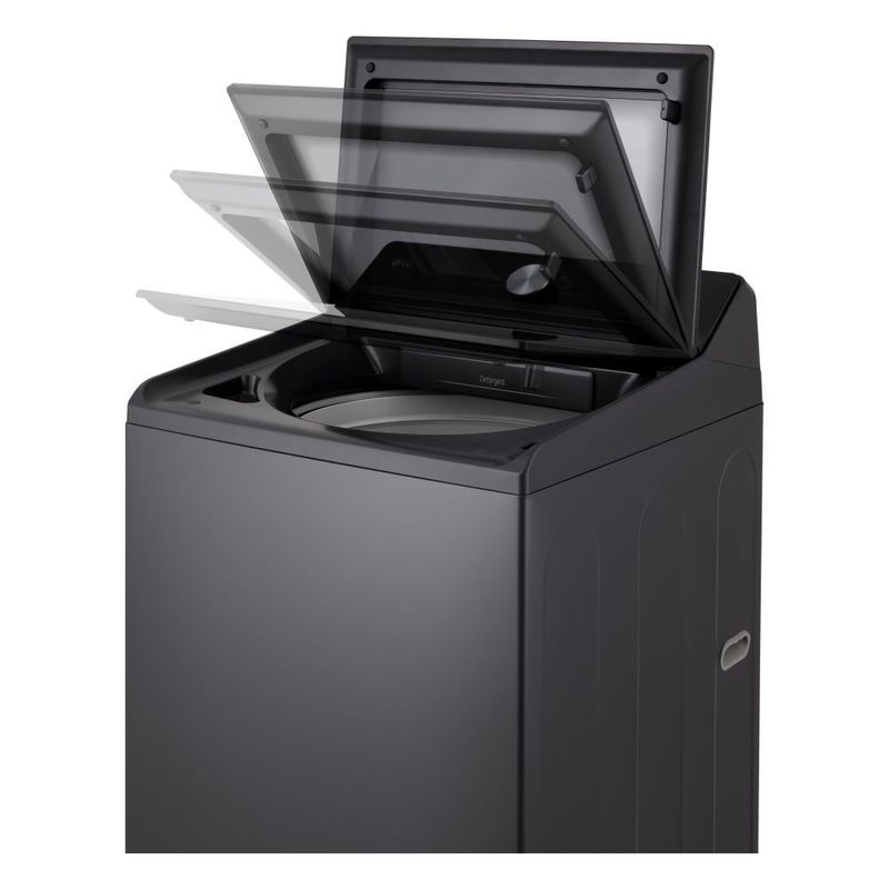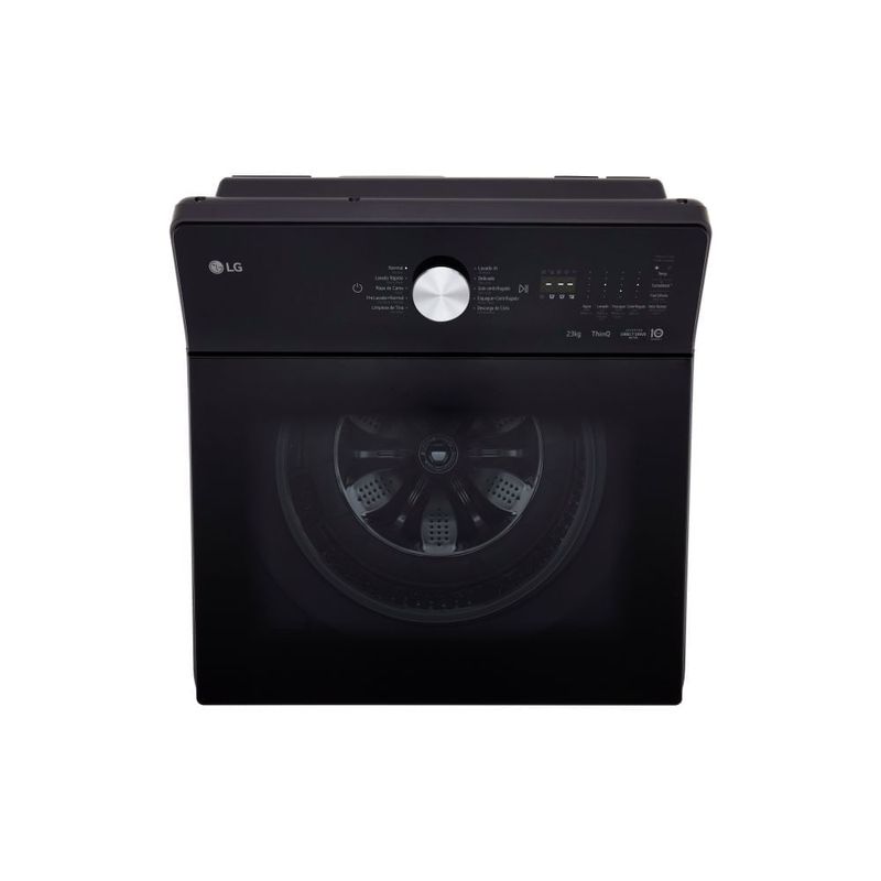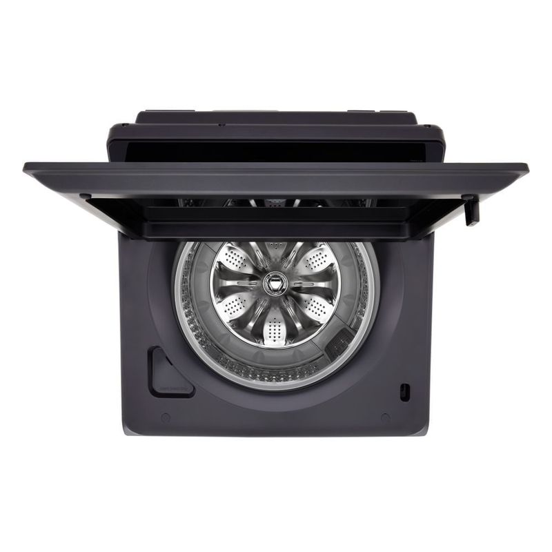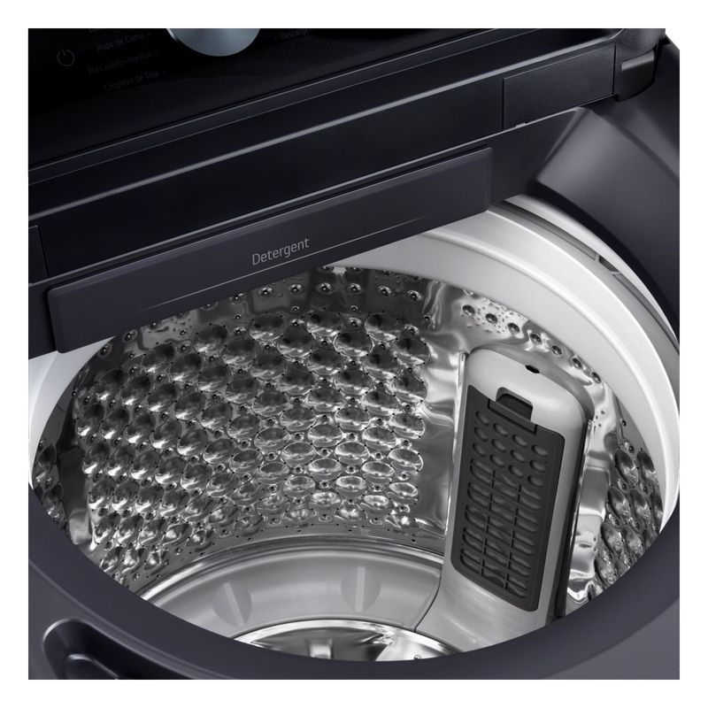 EasyUnload facilita sacar la ropa sin enredos, especialmente cuando la carga es grande; el filtro de pelusas ancho captura más residuos para un lavado más eficiente; la conectividad ThinQ permite iniciar y monitorear ciclos desde el celular; la conectividad también da alertas y programaciones para optimizar el uso diario; la configuración de seguridad de la puerta brinda tranquilidad; con su acabado Gris Grafito y diseño de carga superior, encaja en espacios prácticos. TurboWash mantiene la potencia en ciclos cortos y Direct Drive reduce vibraciones para un funcionamiento estable.