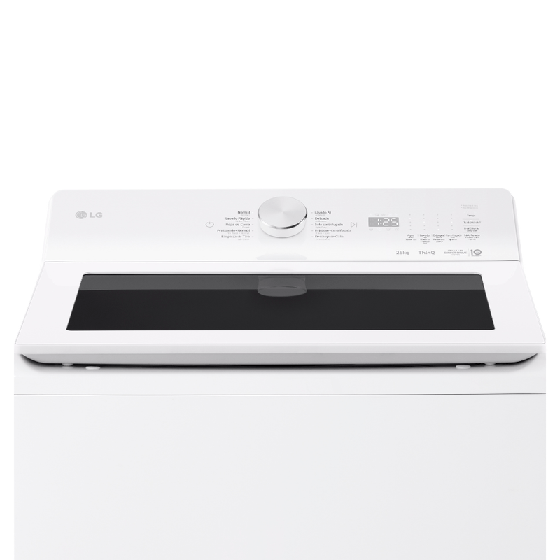 Lvadora LG 25 Kg - Tipo de panatalla Full Touch Buttons & LED Display -Contiene indicación de bloqueo de puerta -Tipo Top Load Washer - Indicador de figura de 18:88 - Inverter Direct Drive - 6 Motio DD -TurboWash 3D -Sistema antivibración TrueBalance - Puerta con cerrado suave - No contiene filtro de pelusas - Señal de fin ciclo - Nivel de agua Auto/Manual - Patas niveladoras - Tambor de acero semi-inoxidable - Entrada de agua caliente/fria -Tambor interior grabado -ThinQ Wifi - Arranque remoto y monitos de ciclo - Ciclo de descargar - Diagnóstico inteligente - Monitoreo de energía - Limpiador Tub Clean - Smart Pairing -